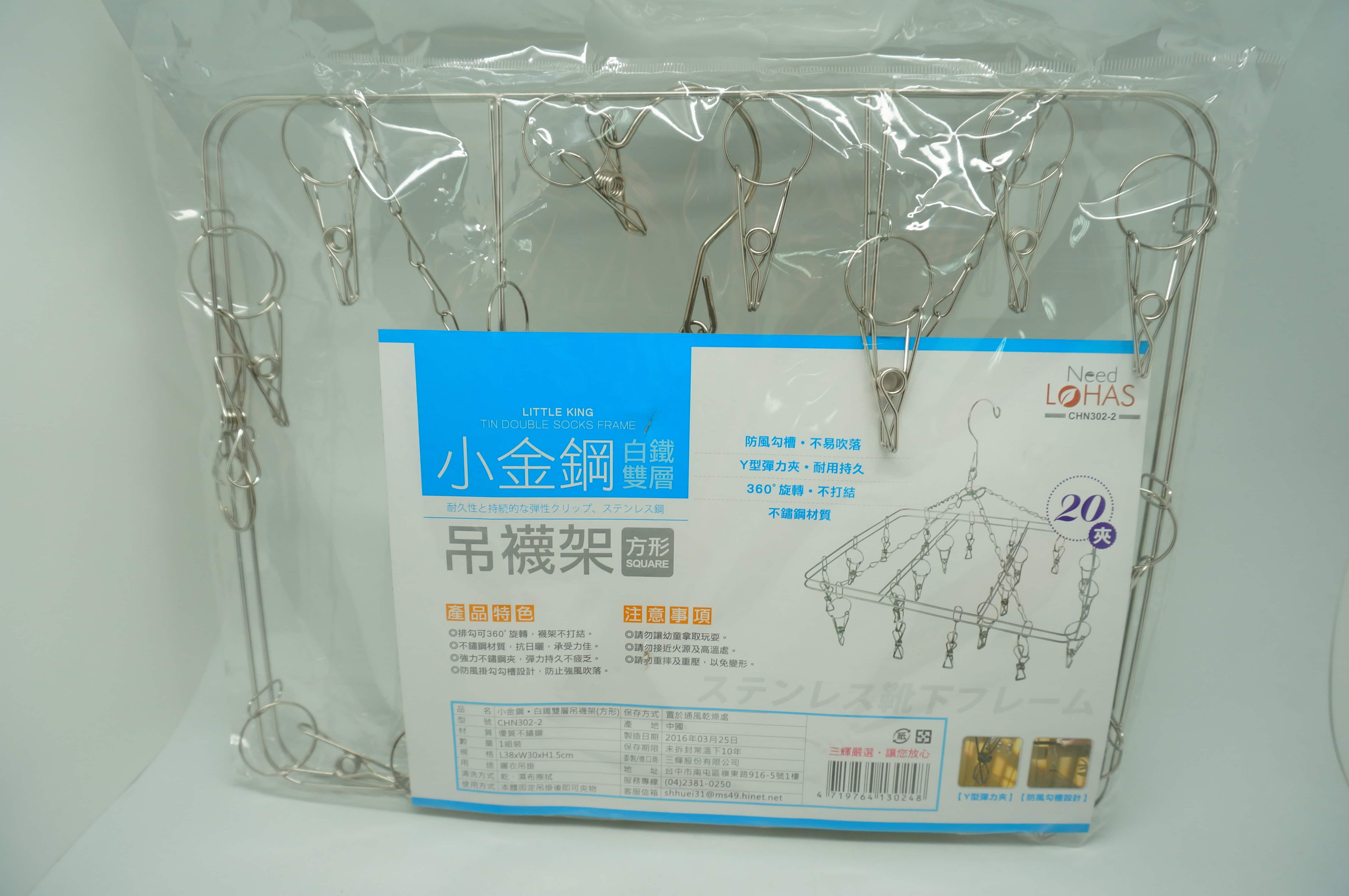 B4744 享樂活小金鋼白鐵雙層方型吊襪架 20夾 38x30cm