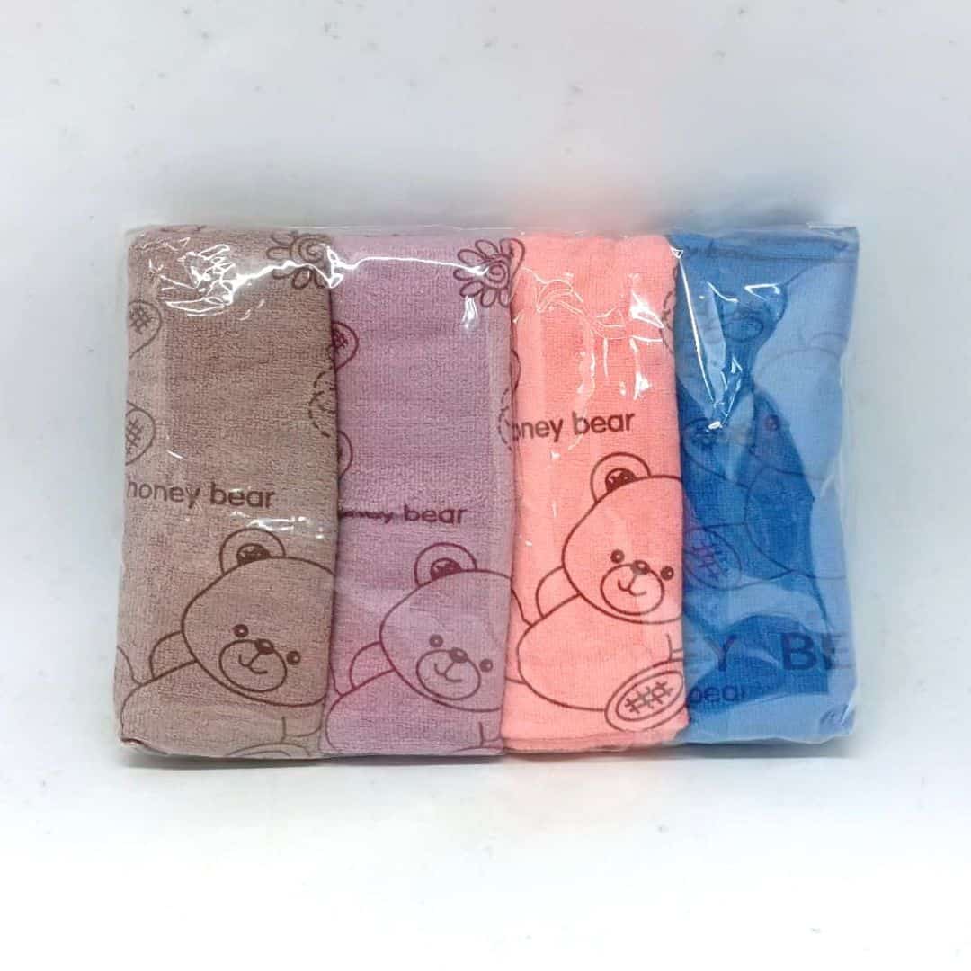R39824 磨絨熊熊印花毛巾 4入